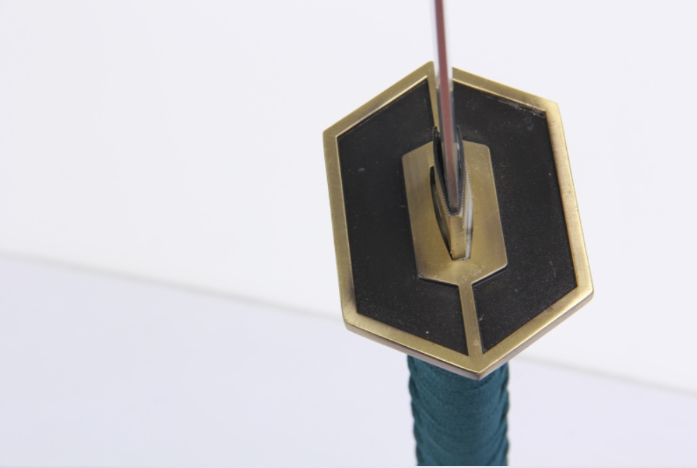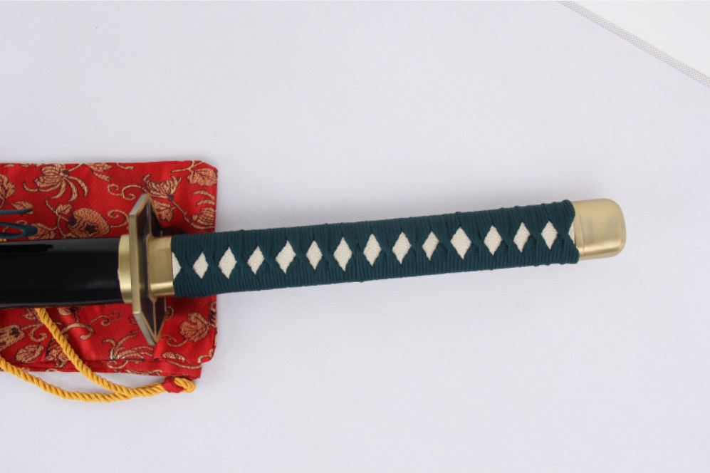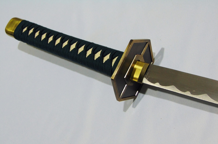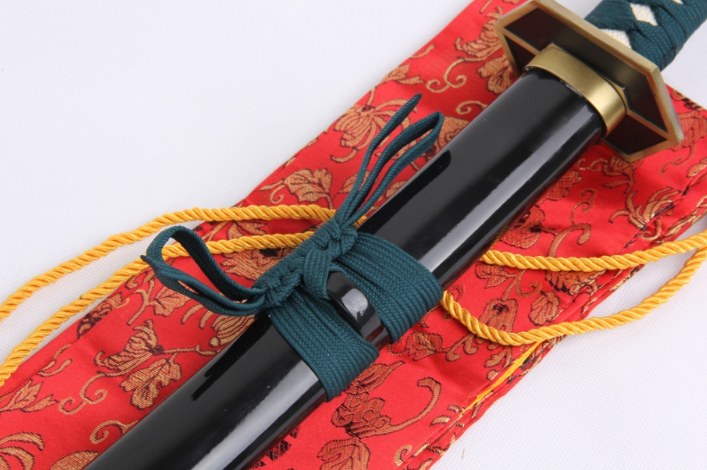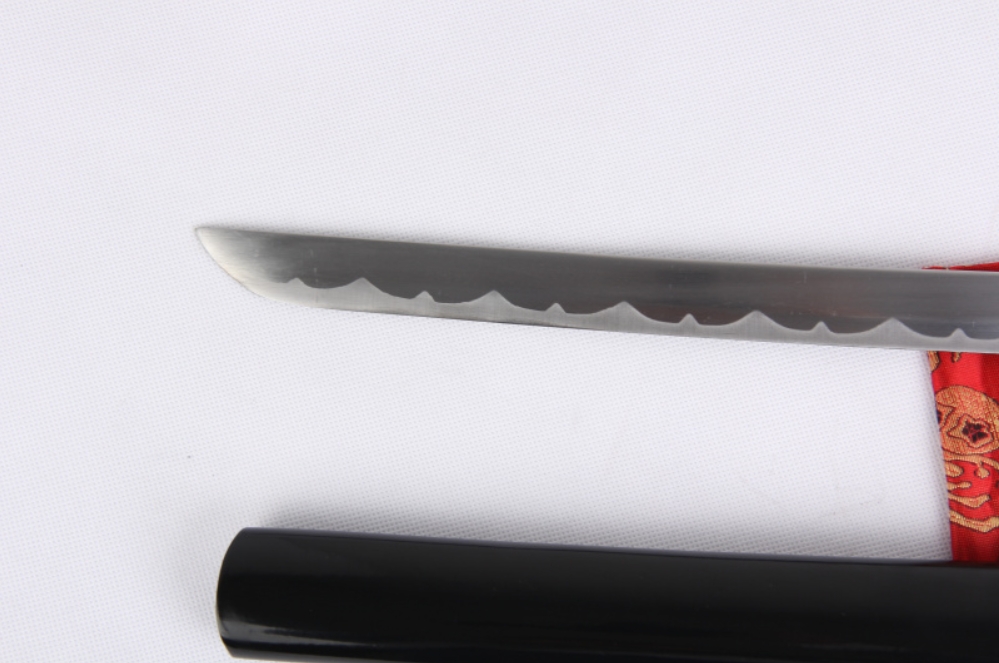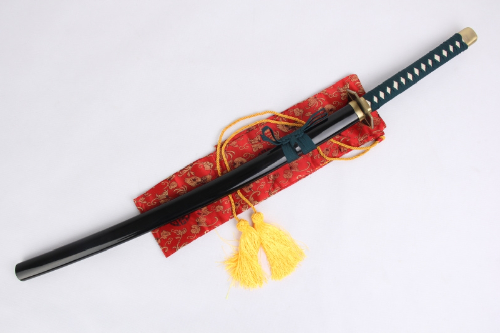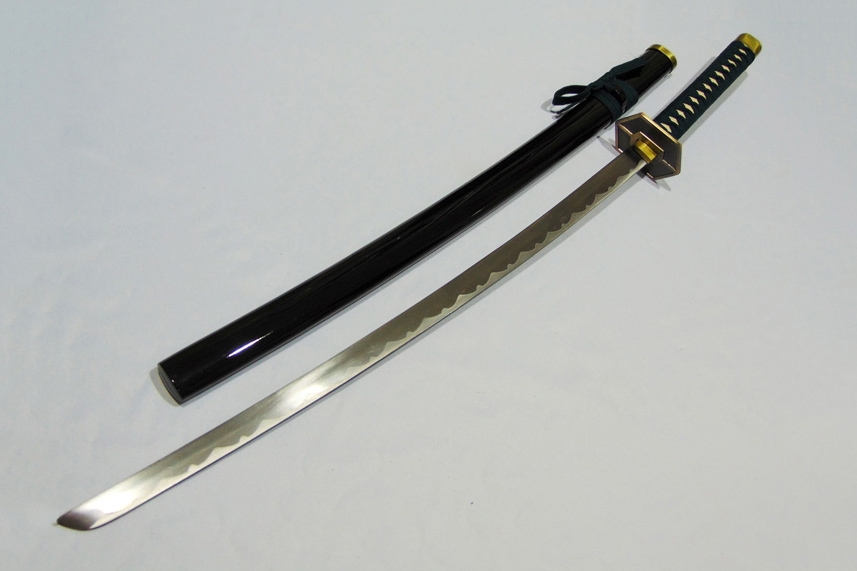 Szénacél pengével készített díszkard, lakkozott fekete hüvellyel, fémötvözet tsubával.