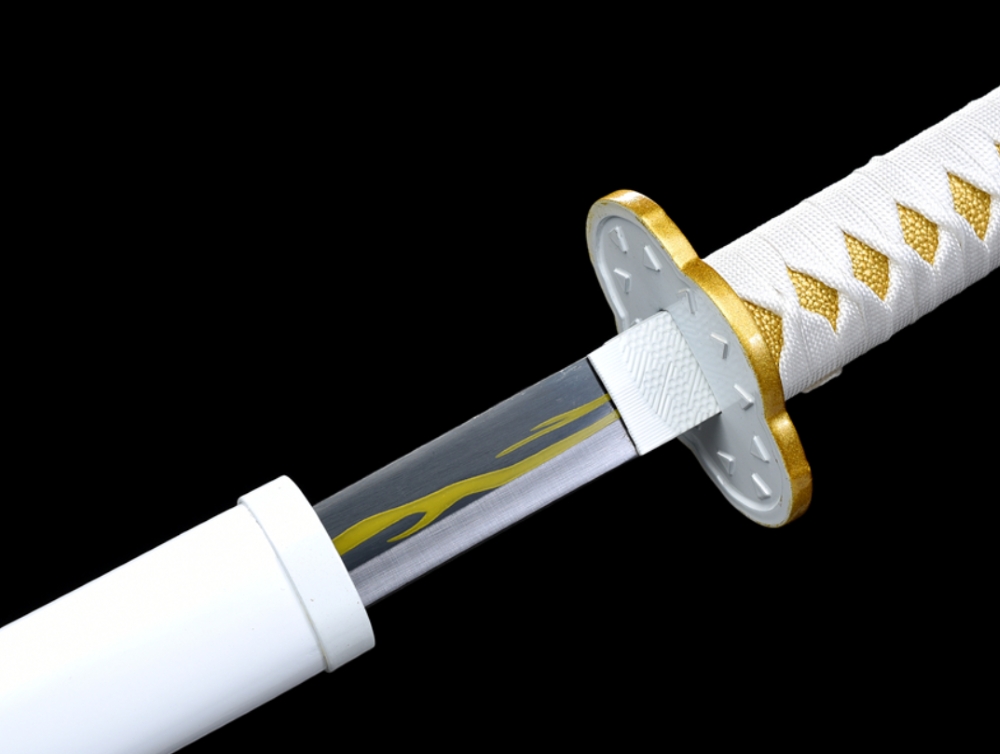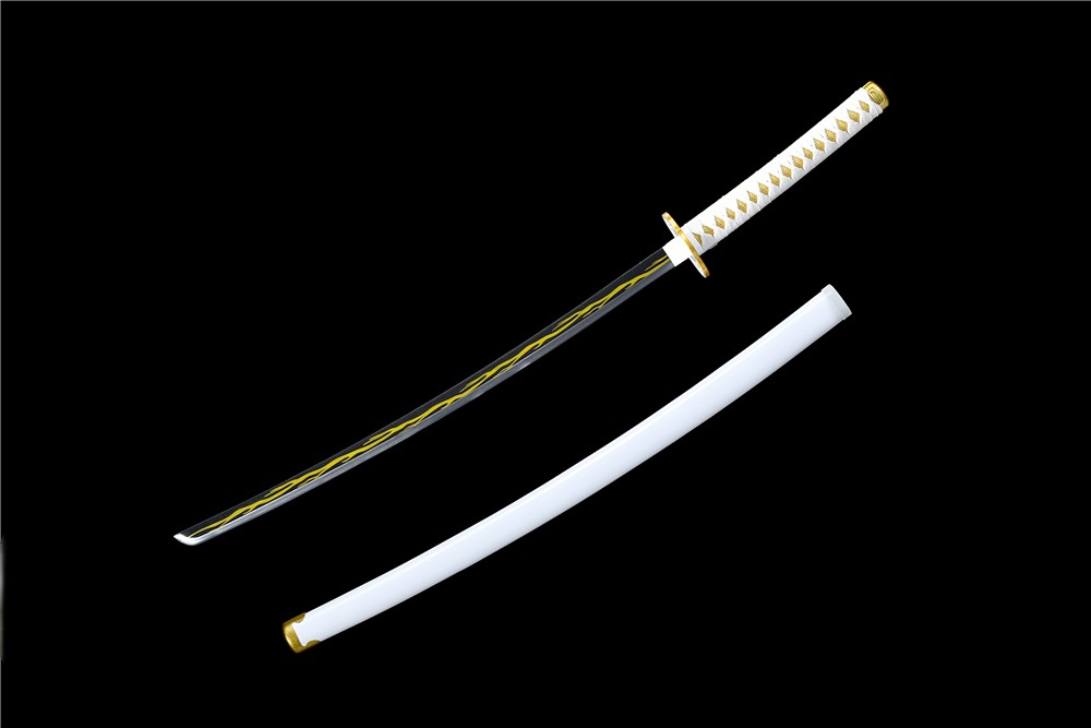 Feketített pengével készített díszkard, fa hüvellyel, fémötvözetből készült tsubával a Demon Slayer sorozatból. Az ár tartalmaz egy vállszíjat is.