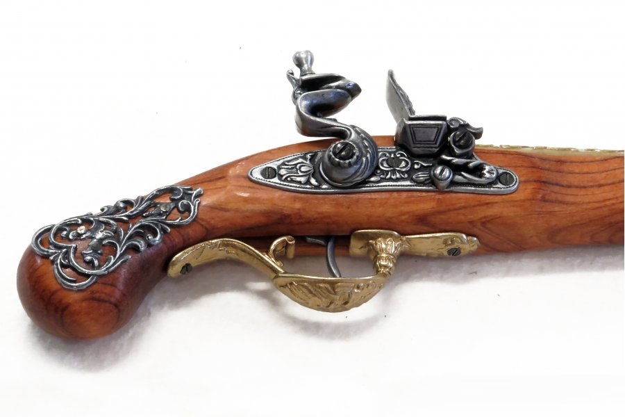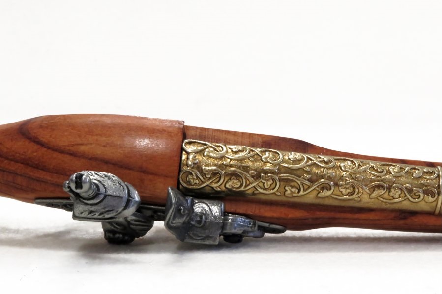A grafit színű változatban (P1196G) is kapható díszpisztoly díszített csővel és markolattal készült, fából és fémötvözetből.
