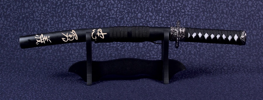 A dísztőr pengéje 400-as rozsdamentes acélból készül. A hüvely lakkozott keményfa. Az ár tartalmazza a képen látható tartóállványt is.
