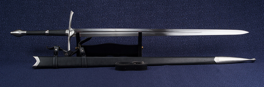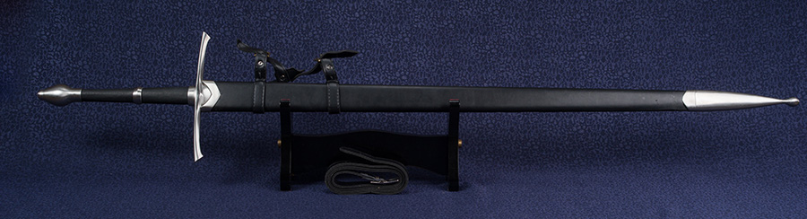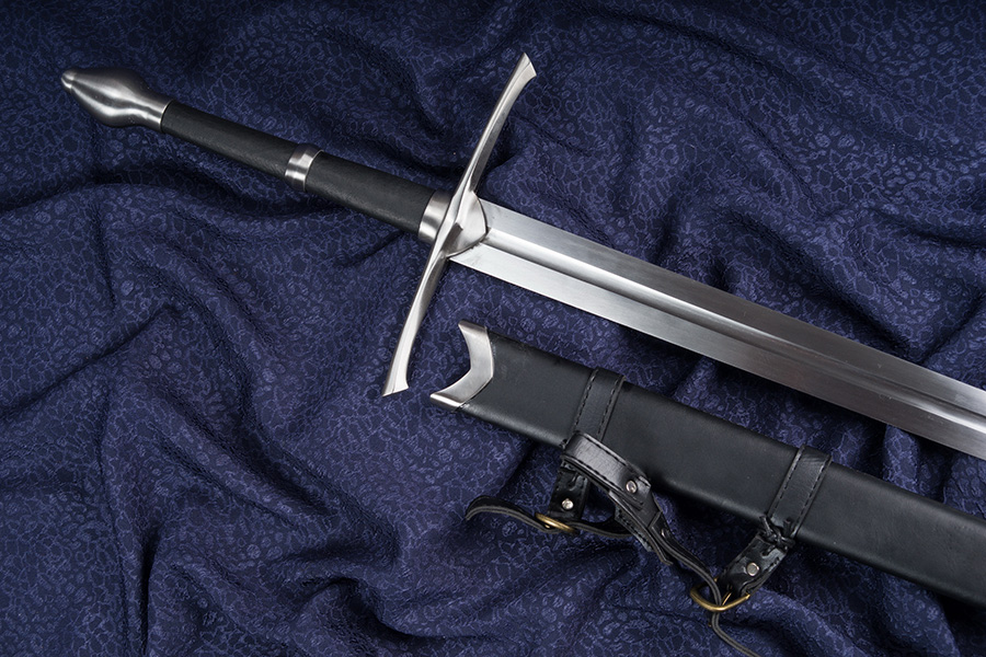 A kétkezes kard vércsatornával könnyített pengéje 1075 típusú szénacélból kovácsolt. A szerelékek anyaga rozsdamentes acél. A kard súlya hüvely nélkül 1690 gramm. A fa hüvely bőrrel bevont, kardszíjjal ellátott. A kardot hagyományőrzésre, vívásra ajánljuk!