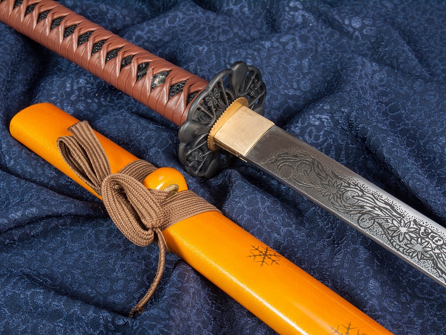 A szamurájkard élezett pengéje 1045 típusú szénacél, savmaratott díszítésű.