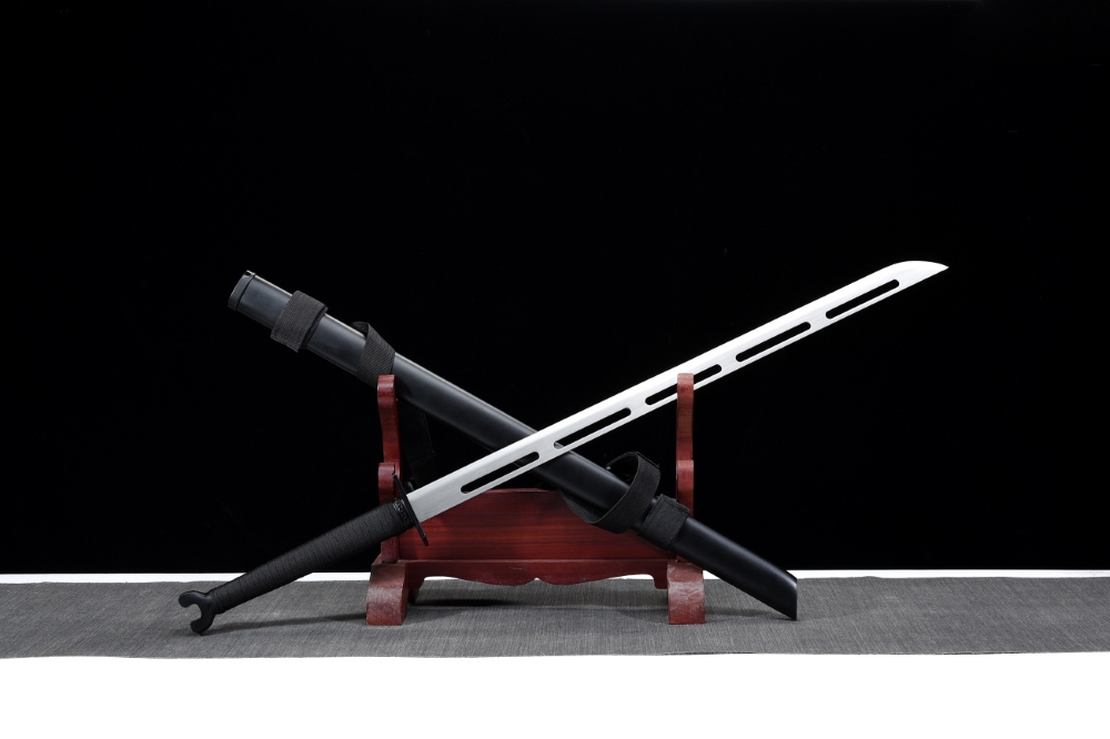 Acélpengével (1045) készített díszkard, fémötvözet szerelékkel, fa kardhüvellyel és vállszíjjal a Bosszúállók (Marvel) mozifilmből.