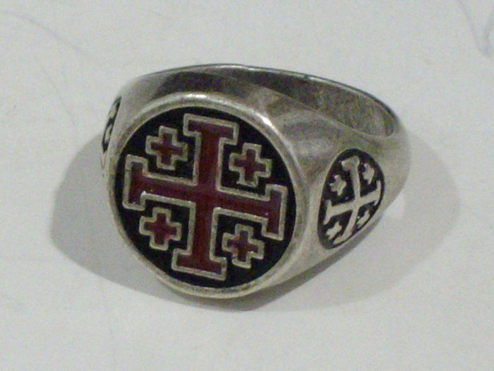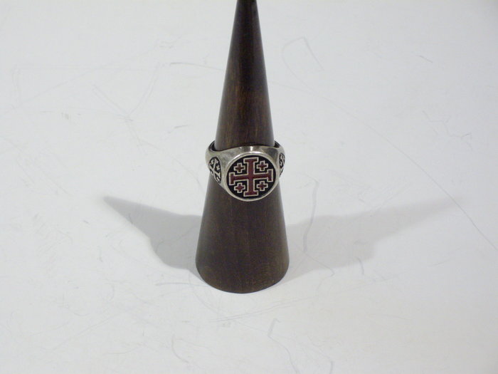 Antikolt ezüsttel bevont, antiallergén fémötvözetből készített, zománcfestett pecsétgyűrű másolata. Tanúsítvánnyal, díszdobozban adjuk.