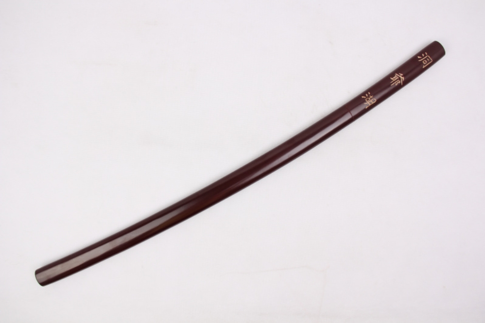 Díszkard, szénacél pengével, keményfából készített, matt festésű sayával.