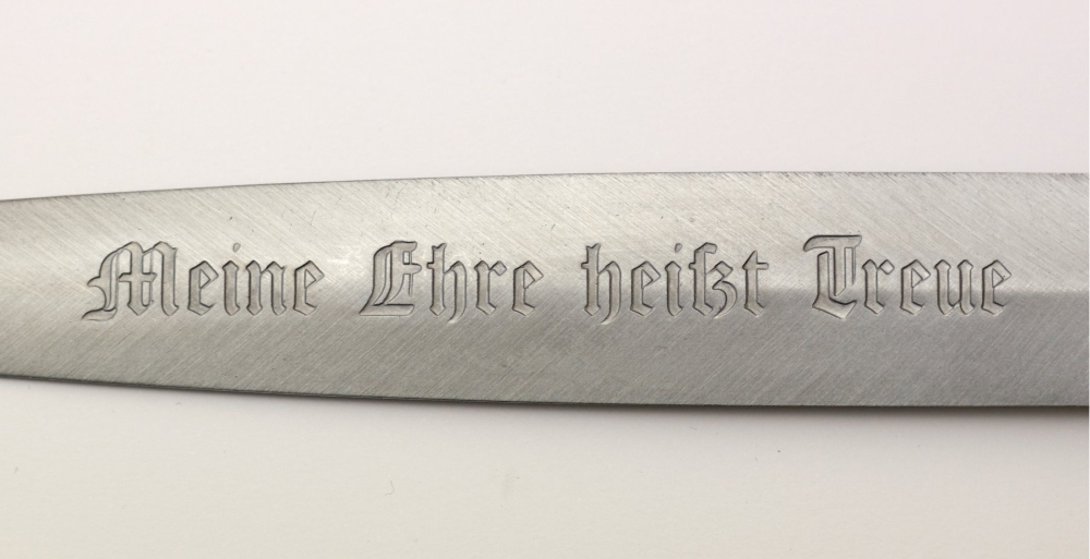 A dísztőr anyaga fémötvözet és műanyag. A pengén a „Meine Ehre heißt Treue” („Becsületem a hűség”) felirat szerepel.